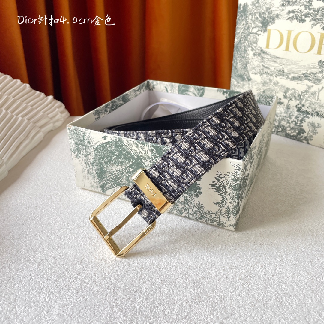 This Dior belt is 40mm wide. It is decorated with black Oblique print and paired with black grated cowhide lining. The metal-clad brass buckle design is engraved with the "DIOR" logo, ingeniously enhancing the style. It can be easily matched with various casual items.