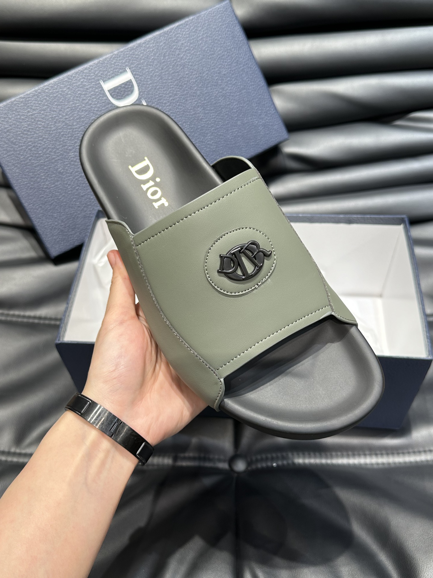 ?? Model No. #2000????????Dio* ~ High-end men 's summer slippers, upper made of top-grain cowhide, original hardware decoration, private mold outsole, perfect details, exuding luxury style, casual loose and comfortable, high quality masterpiece, a must-have for summer! Size: 38-45...