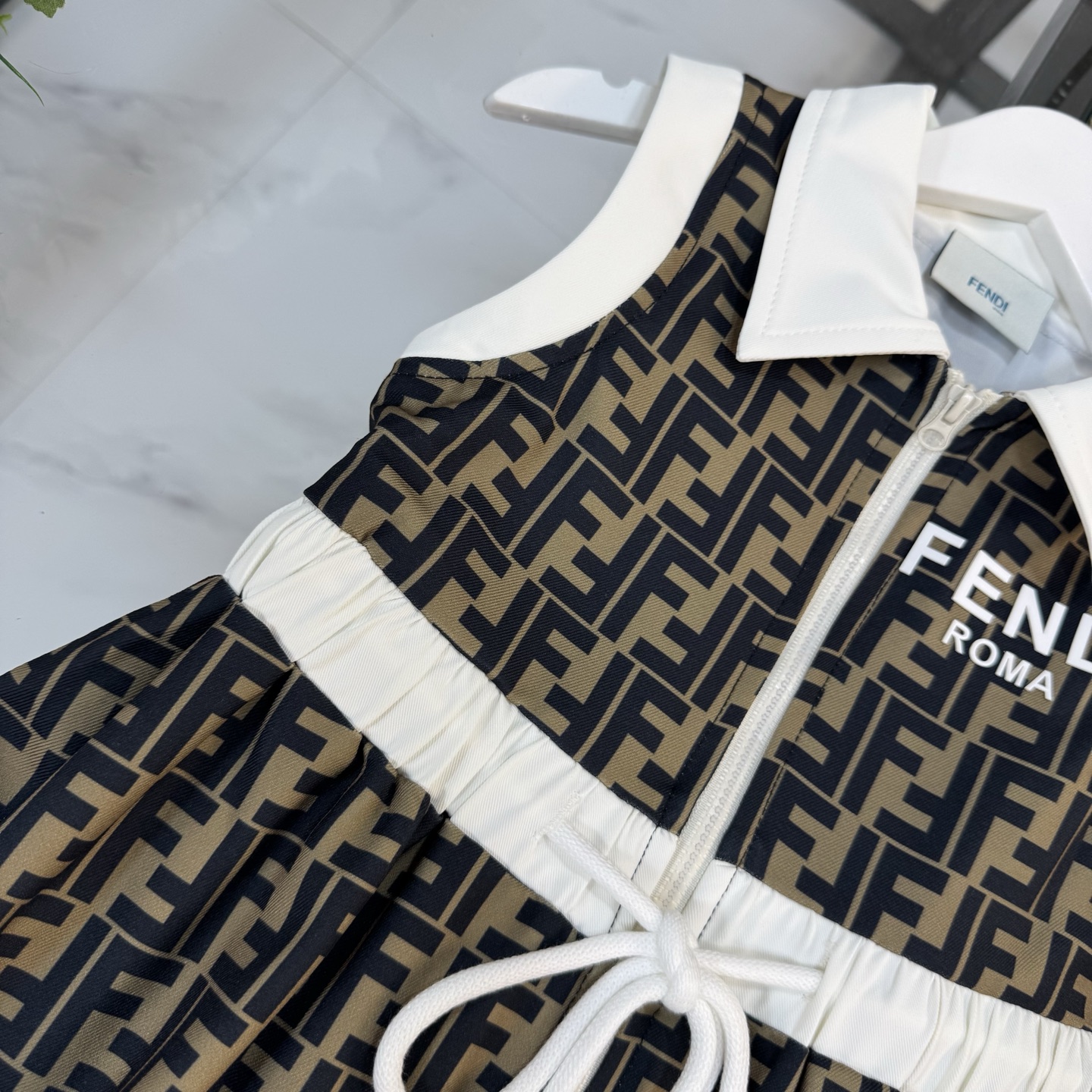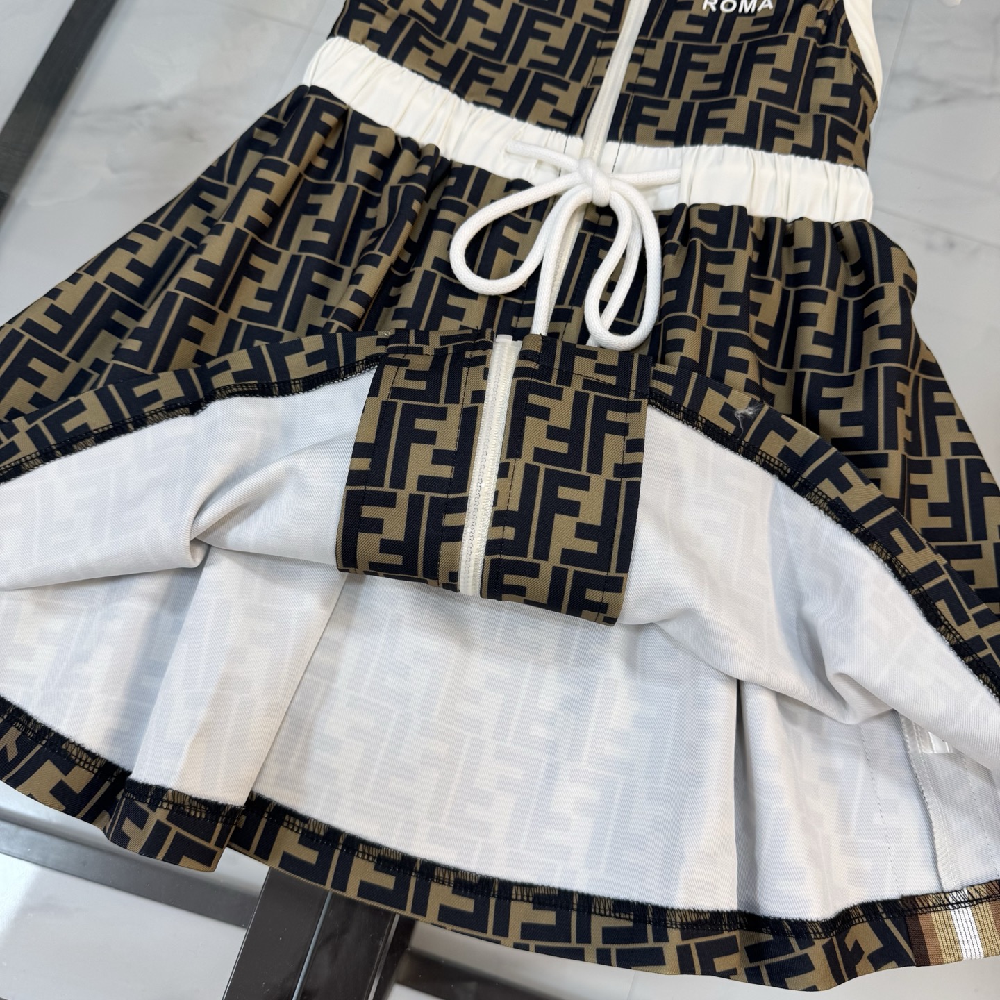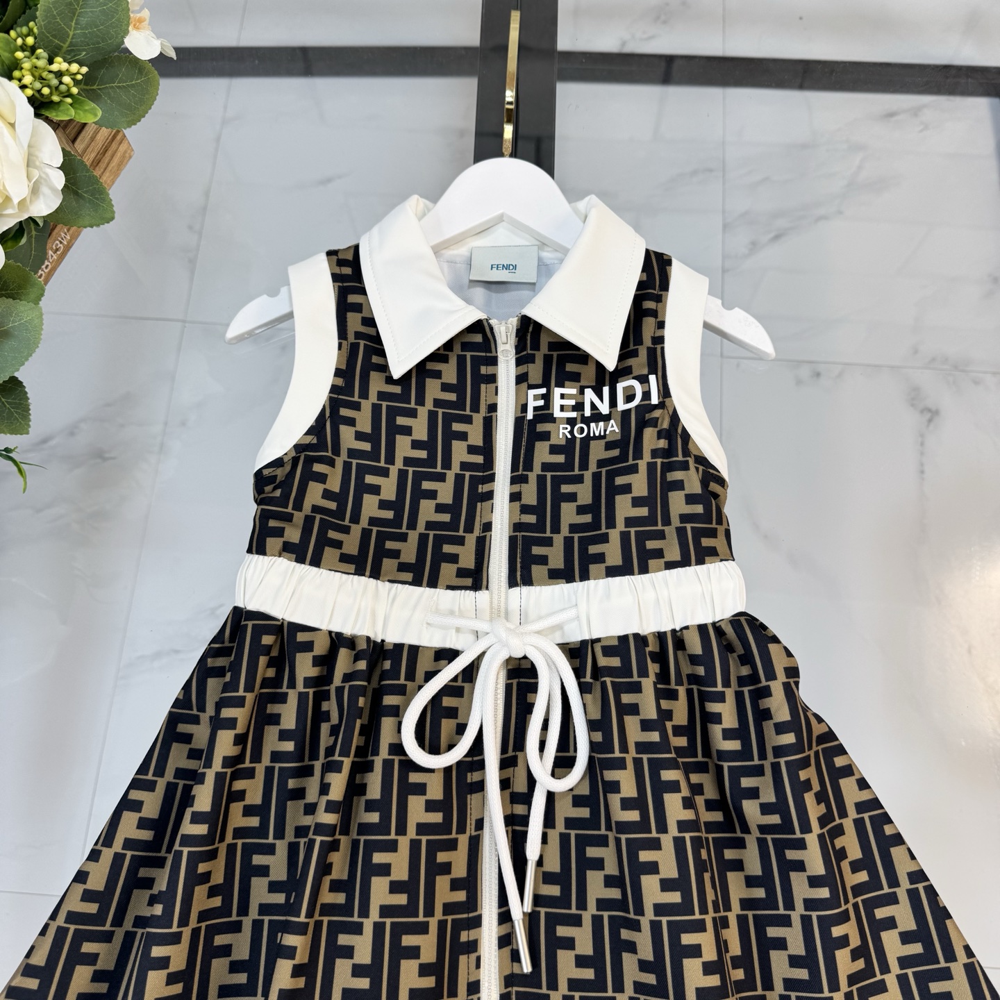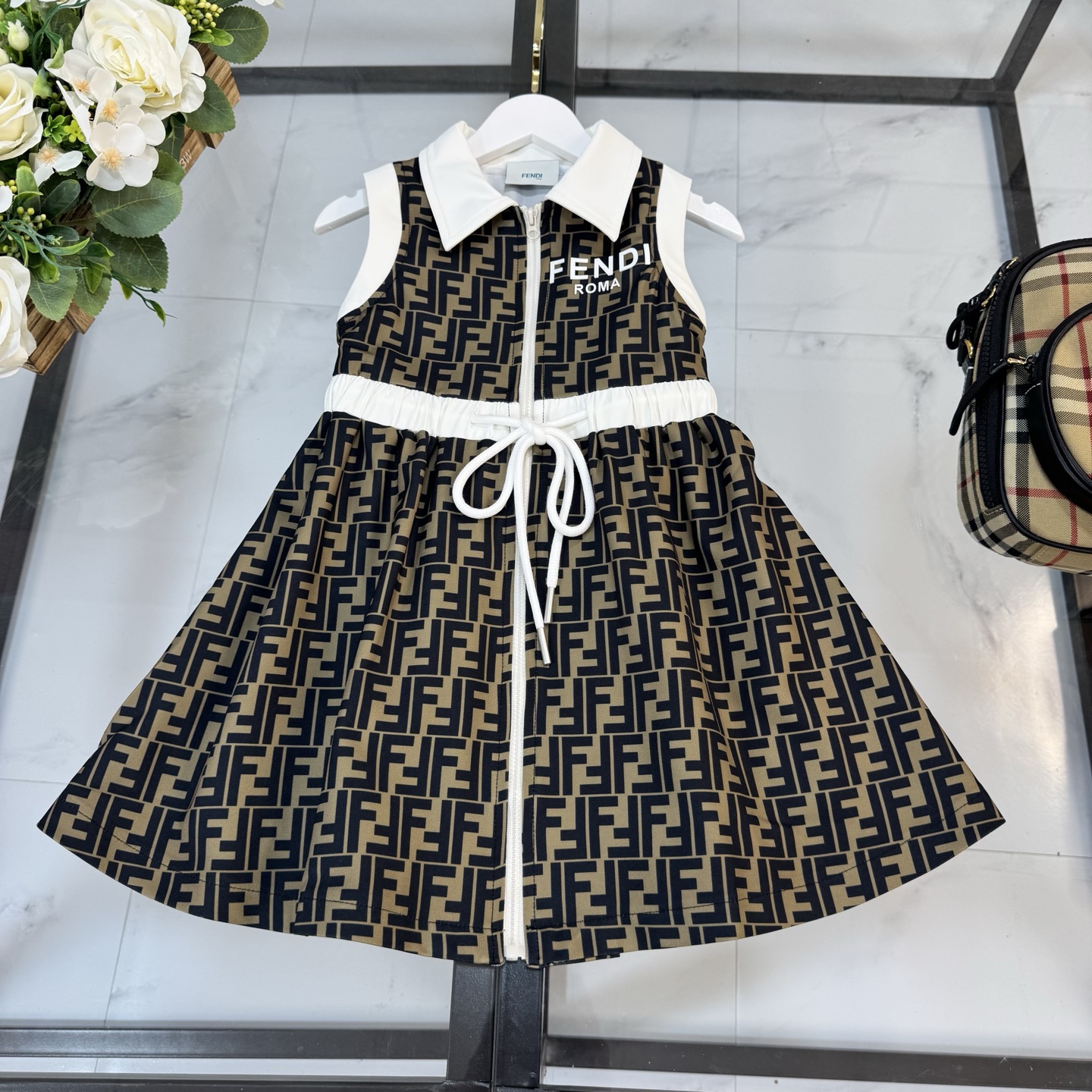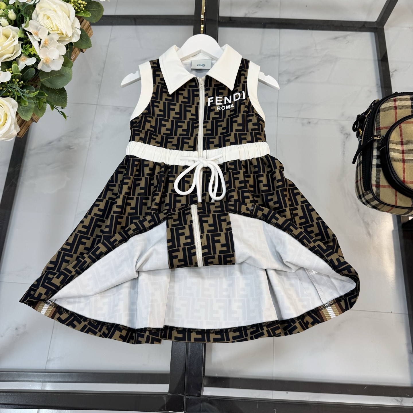 Fendi, high-end children's clothes, girls dress, 100% polyester fabrics, high-definition digital printing, inner cotton, upper body comfortable, good-looking, code number: 110/120/130/140/150/160 cm