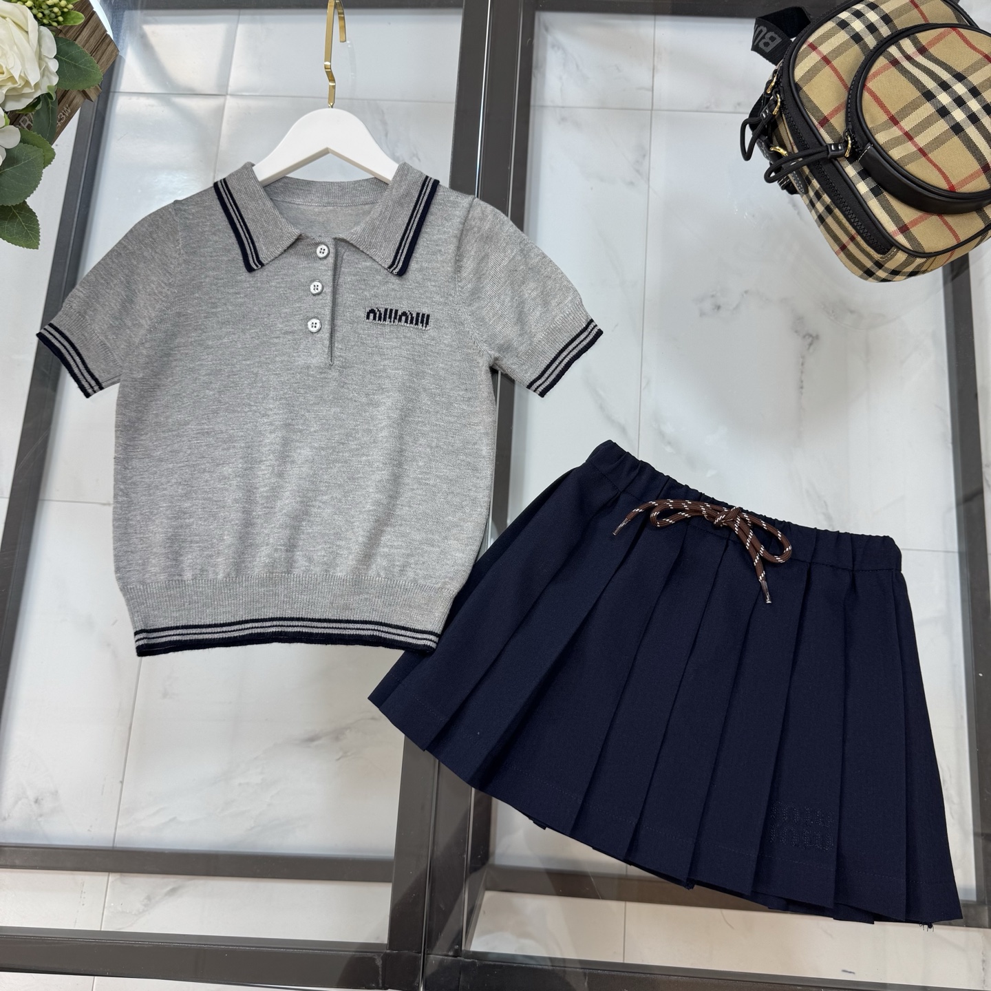 Miumiu miu miu, high-end children's clothes, girls dress, custom cotton yarn quality, classic small letters on the left side of the bump color embroidery logo, color collar design, upper body comfortable, good-looking, code number: 100/110/120/130/140/150/160 cm