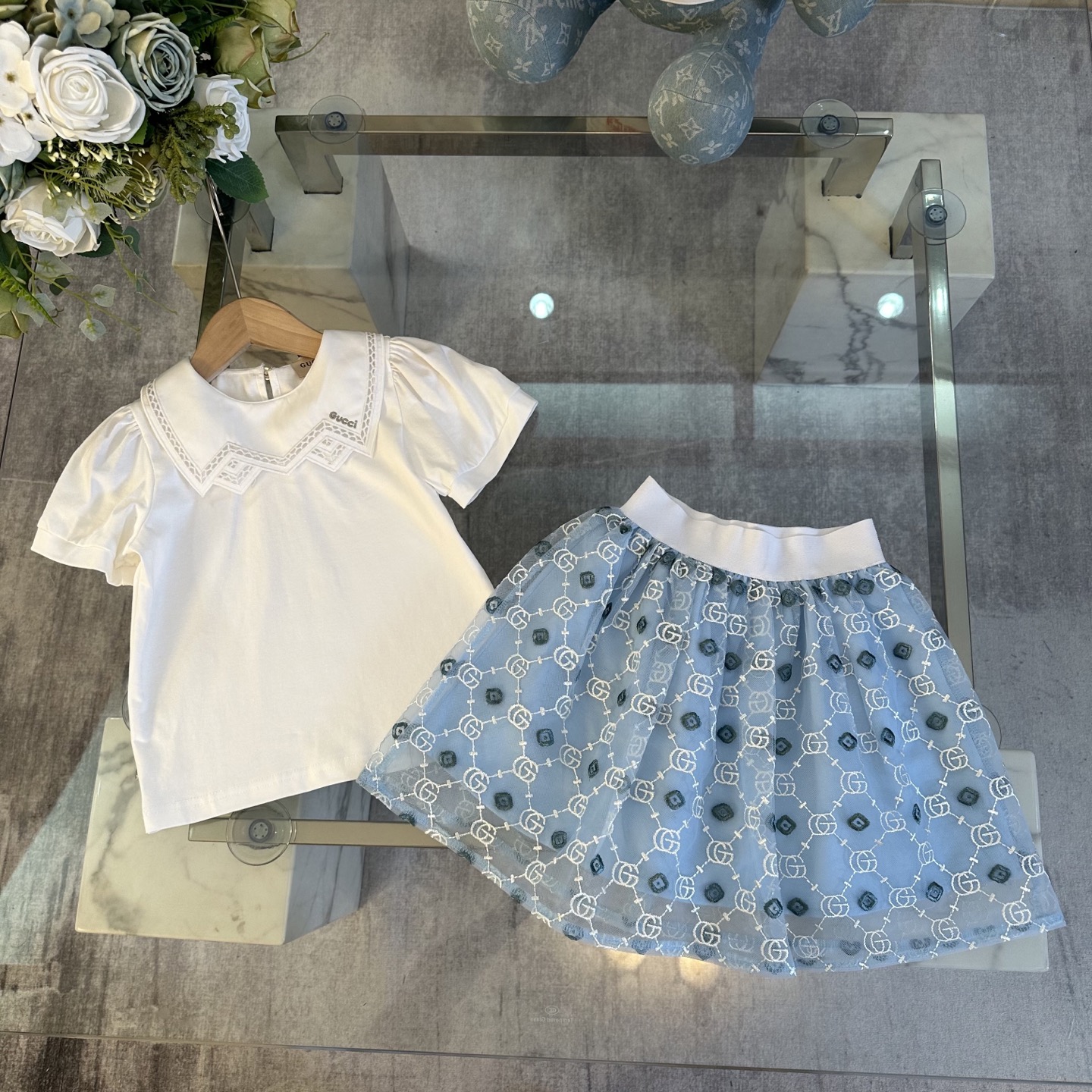 Gucci Gucci, high-end children's wear, girl's skirt, pure cotton blouse gauze skirt collocation, upper body comfortable, good-looking, code number: 90/100/110/120/130/140/150 cm