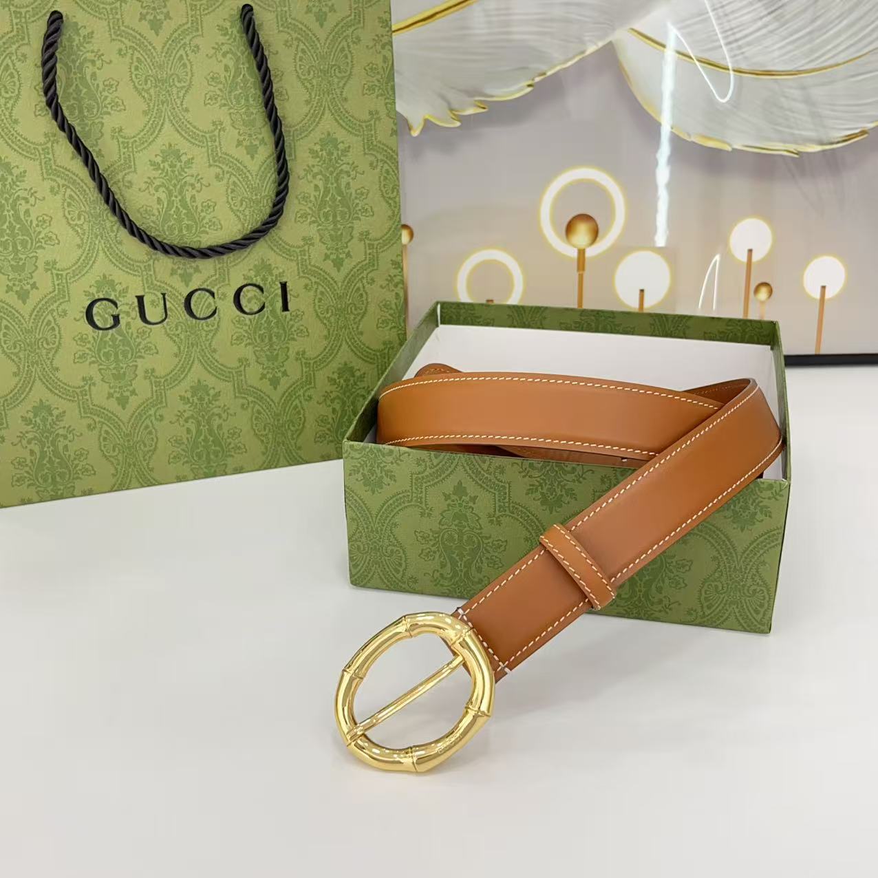 Gucci women's new bamboo buckle with double-sided cowhide and copper buckle, 3.0 cm wide Yards: 75 80 85 90 95 100 105 euros