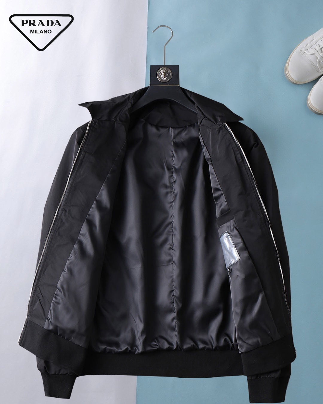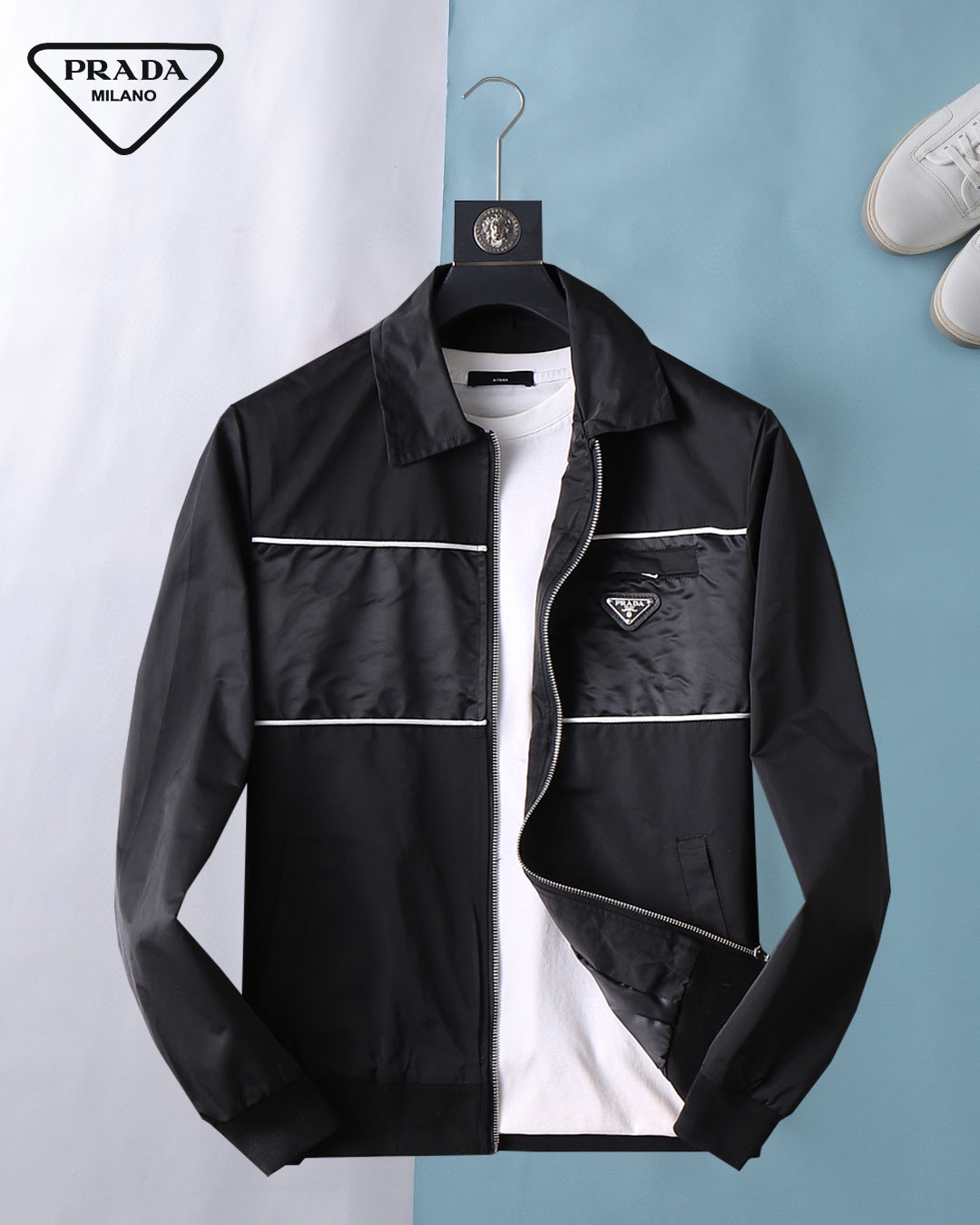 Prada (High-end Quality) Spring 2025 New Fashion Casual hooded Jacket, imported original technological fabric, comfortable and breathable when worn, exquisite handcrafted logo on the chest, unique European fashion style design, digital positioning printing process on the back, highlighting the personality of young people, original hardware accessories, extremely high grade, looking very cool when worn! Please report your height and weight when placing an order for M-3XL!