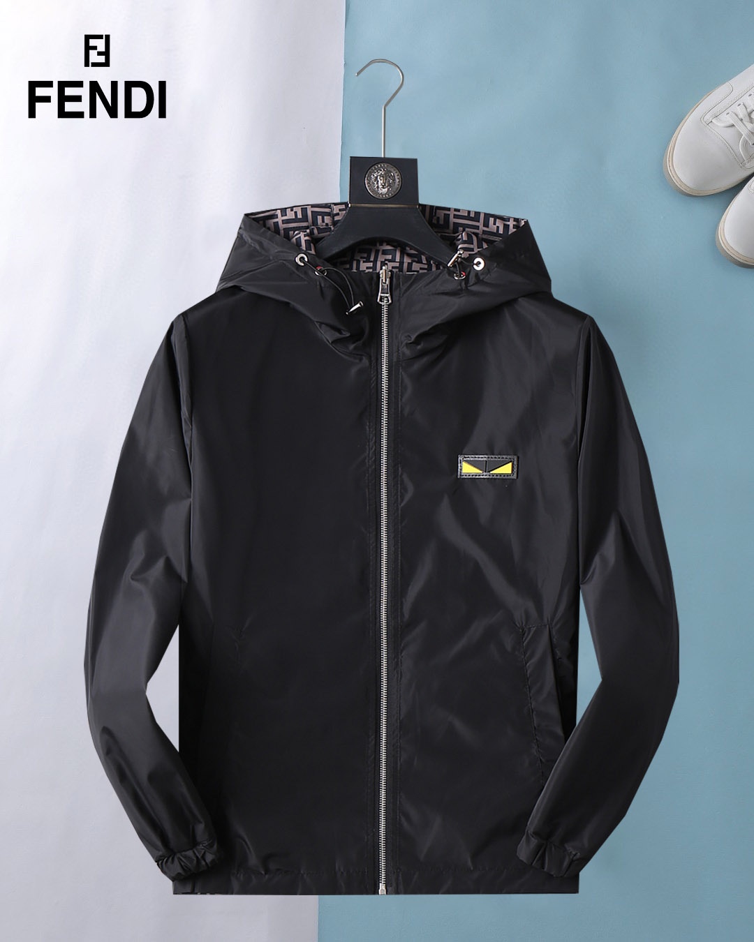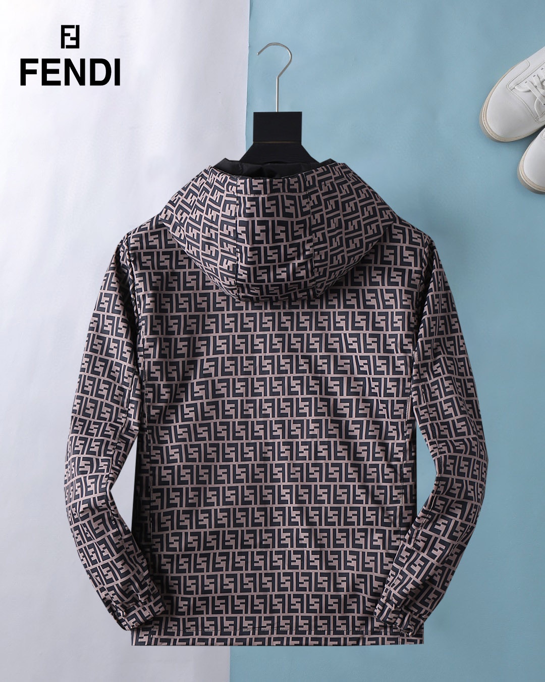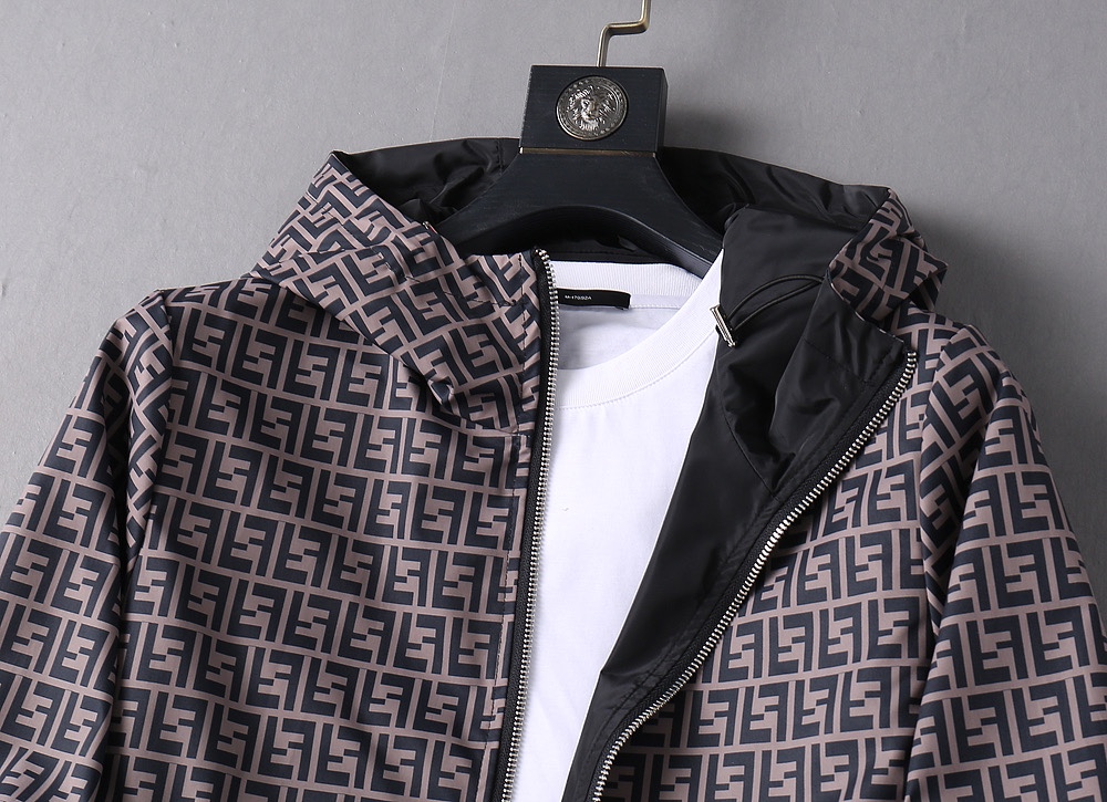 Fendi (High-End Quality) 2025 Spring New Fashion Casual hooded Jacket, made of imported original technological fabric, comfortable and breathable to wear. The exquisite handcrafted logo on the chest, with a unique European fashion style design, and the digital positioning printing process on the back, highlighting the personality of young people. Original hardware accessories, extremely high grade, looking very cool when worn! Please report your height and weight when placing an order for M-3XL!