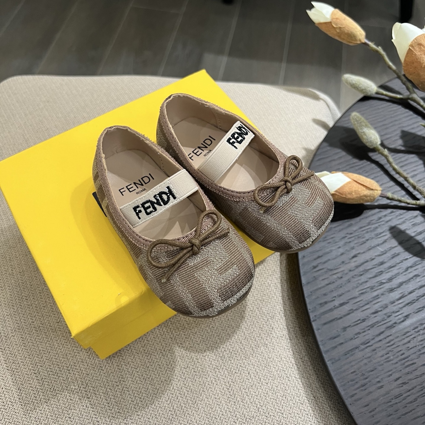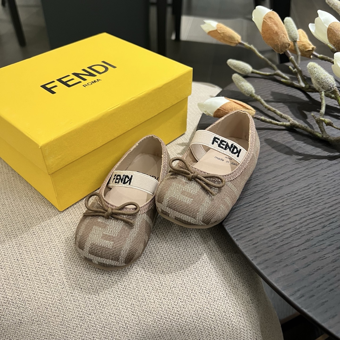 Reservation for 4 days! Fendi, HIGH-END children 's WEAR, girls' princess shoes, CLASSIC DOUBLE F DESIGN, SOFT and COMFORTABLE ? ALL hand-woven BOW, FIT BEAUTIFUL, size: 20 21 22 23 24 25