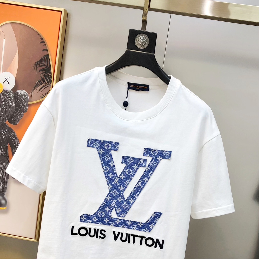 LV Louis Vuitton Spring/Summer 2025 new single men's casual set short sleeves and shorts for sale without disassembly ?? The official website is also selling the big hit ?? ? high version fashionable and versatile ? three-dimensional embroidered letter patchwork logo pattern design made of original imported pure cotton fabric pants jacquard process denim pure cotton fabric soft and delicate hand feel comfortable to wear Original imported engraved hardware accessories for customers, fine workmanship by the OEM factory, smooth lines, exquisite craftsmanship, superb style, very fashionable and cool when worn ?? highly recommended! Counter size: M-3XL (The largest size can wear about 190 pounds. Please report your height and weight when placing an order.) Shipped the next day in black and white