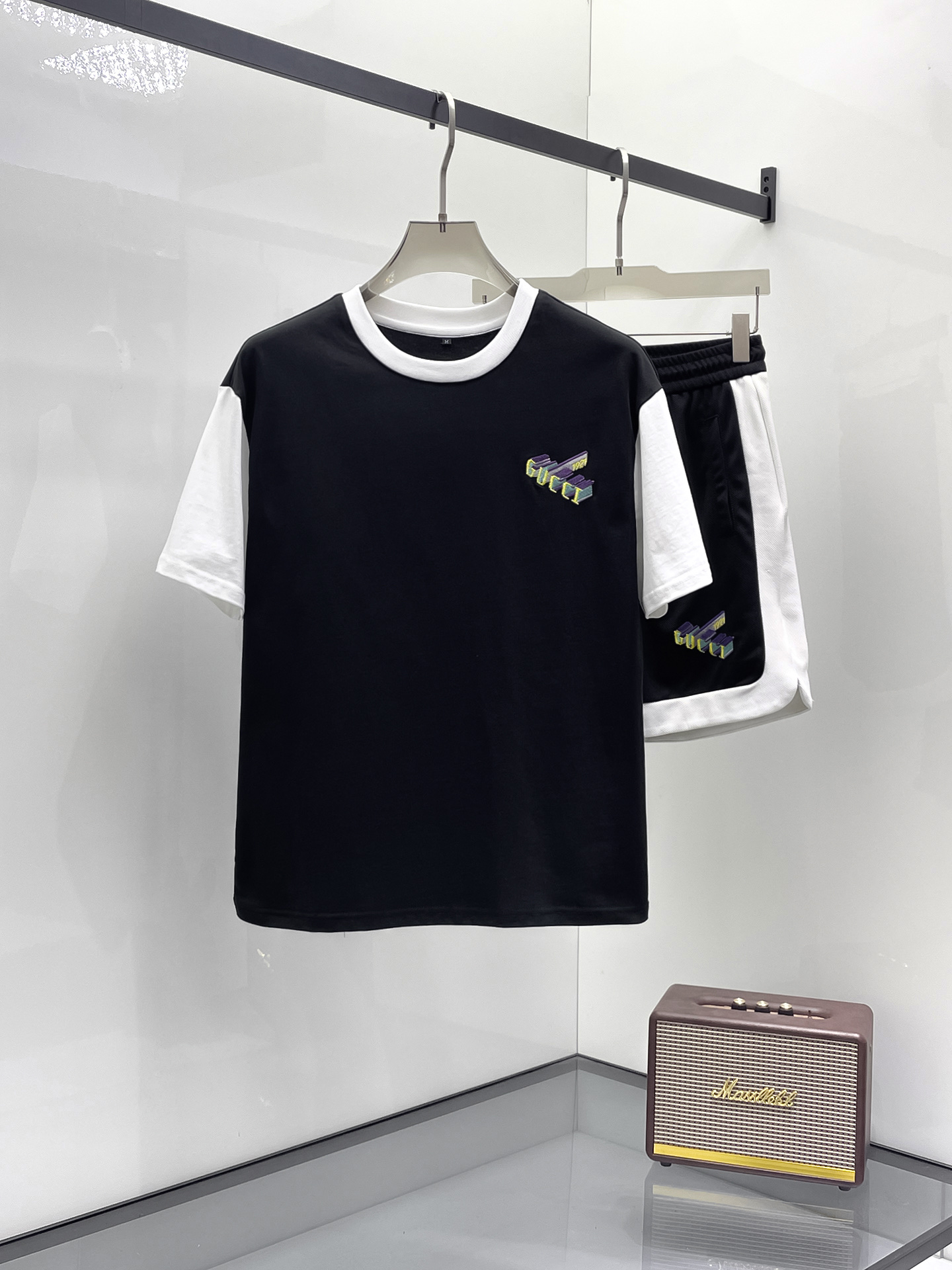 Gucci 2025ss Spring/Summer New Casual short-sleeved and short-shorts set! The casual set with a fashion flavor that celebrities love the most is simple and elegant. The official website features a 1:1 craftsmanship design! The clean and neat cut exudes a strong urban style. Exclusive top-quality custom fabric is available. The hand feel is soft, dry and comfortable, and the wearing effect is crisp and stylish. The three-dimensional cutting process and the pattern are all of high standards, with appropriately sized silhouettes! It's not tight at all. Wearing it makes you feel good. With so many top-quality raw materials, it creates a high-end product with unparalleled value. It has all three standards and is the first choice for high-end, trendy and fashionable people. The wearing effect is super nice! Size: M-3XL