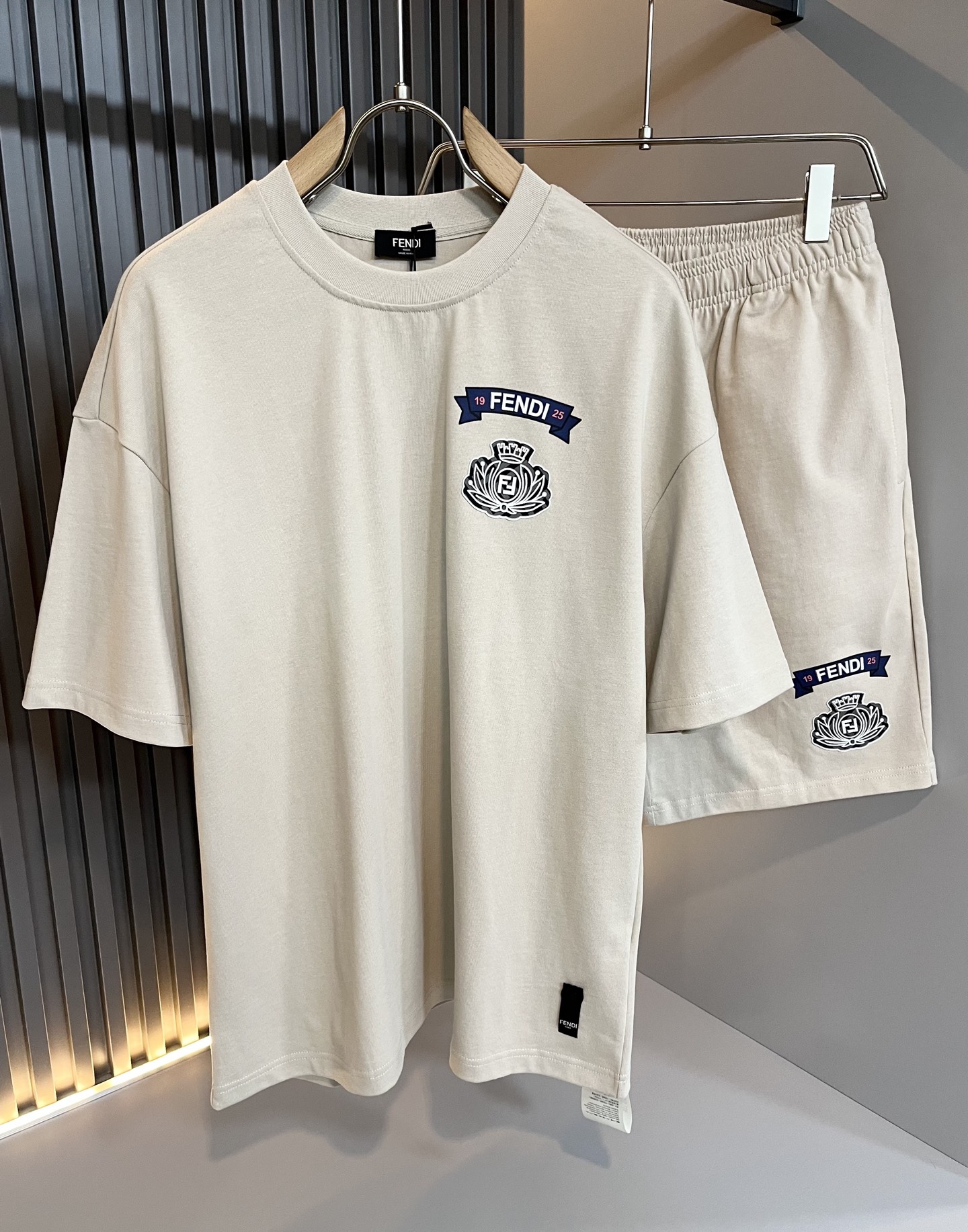 FEN * Di's new men's casual set for Spring/Summer 2025 is versatile and not limited by age. The body features a LOGO embossed design! Whether you are a mature person or prefer trendy outfits, it's fine. This is a must-have item in a guy's wardrobe! Customized original pure cotton fabric! The upper body is well-shaped and fits perfectly, providing an excellent feeling. The clothes are straight and stylish, distinguishing them from low-end and shoddy ones. They won't collapse after washing the collar. Size: M-2XL
