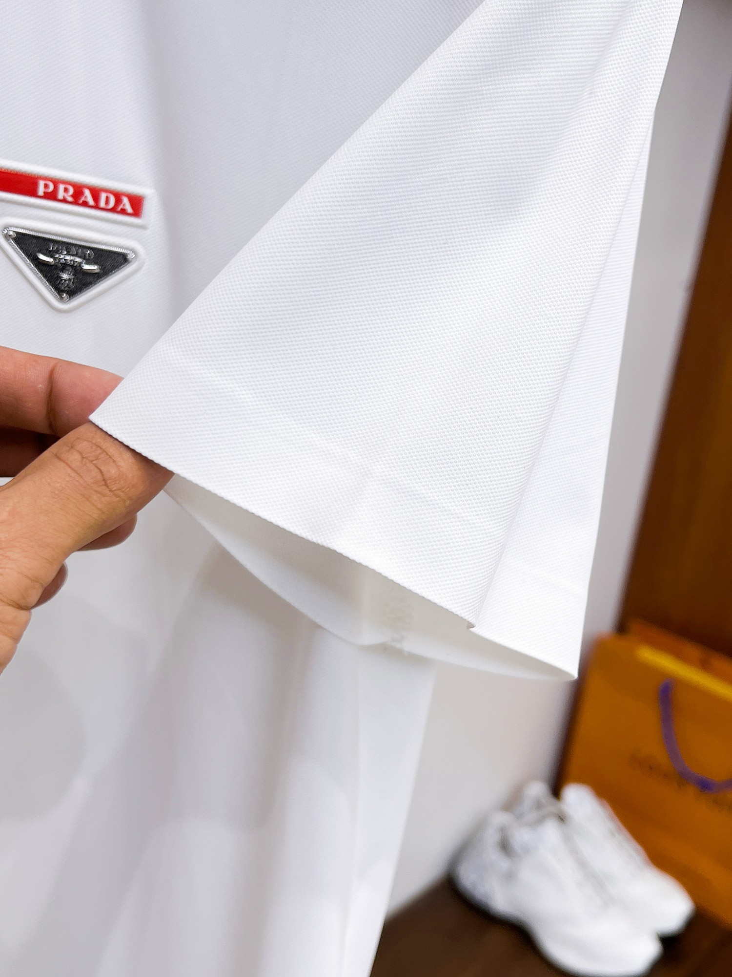 A must-have item for high-end business white-collar workers from Prada! Seamless embossed ice silk casual business short-sleeved Polo, made of technological fabric, ice silk seamless, with an excellent body feel, smooth hand feel and great texture! It has good elasticity and no sense of restraint at all. The fabric comes with breathable mesh, which can absorb moisture and sweat, and dries quickly to keep it dry. The small lapel and front button design shows a tall and straight posture. It is not soft and slippery. The simple style is suitable for both business and casual wear. Highly recommended! High-elasticity ice silk, with a touch as smooth as jade silk, clean and neat, exuding an elegant and gentlemanly demeanor. High-end materials, with the focus on the fabric. Quality control is a must. The hand feel is extremely fine and smooth, and the fabric has a good luster and a good frame feel when worn, making it a mature and high-quality men's wear! Summer sweat dries instantly, a brand-new experience for business commuting and leisure M-4XL