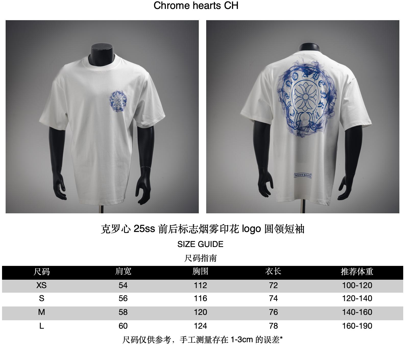 Chrome hearts CH/ Chrome Hearts 25ss front and back logo Smoke print logo round neck short sleeve size recommendation
