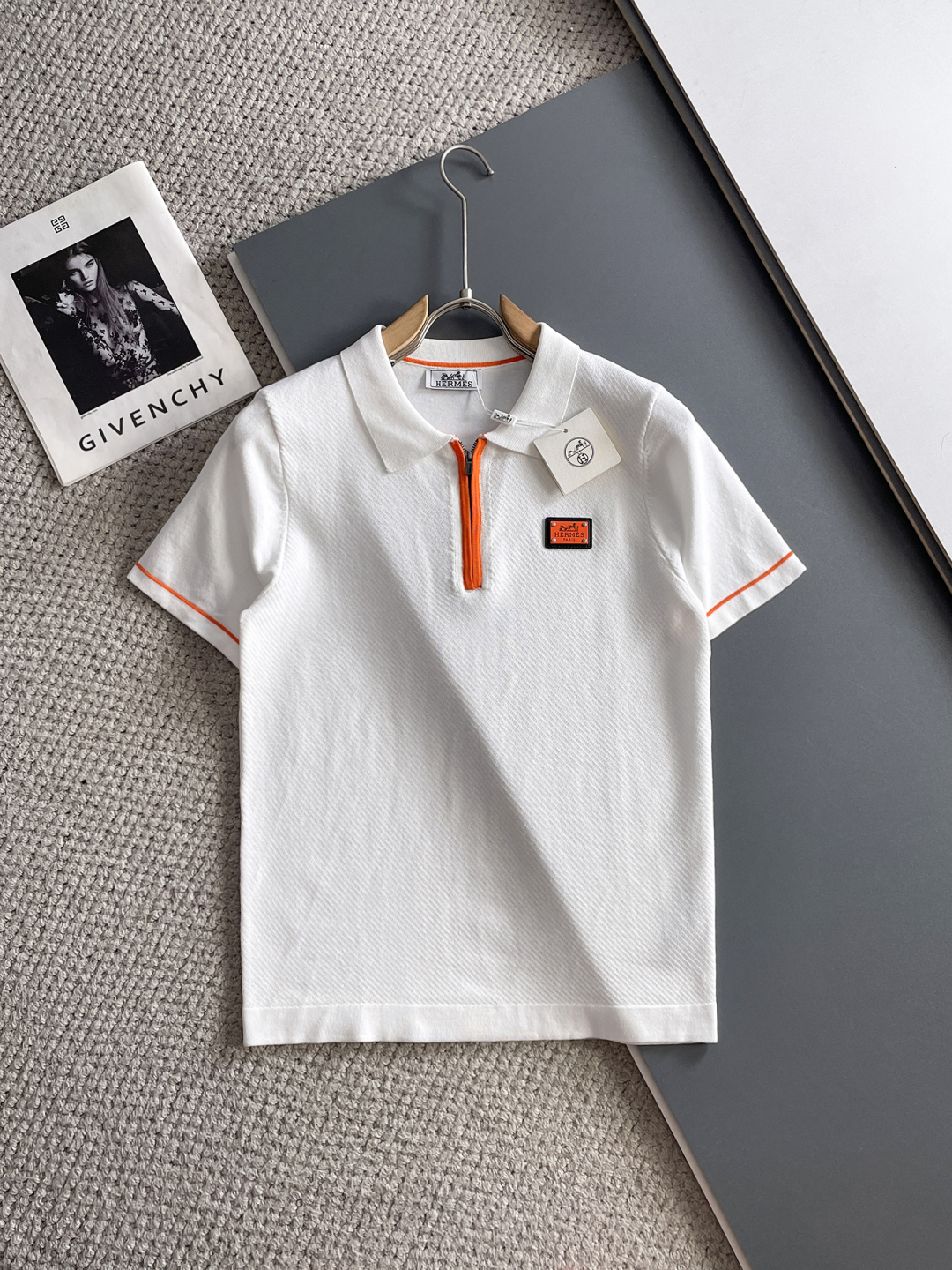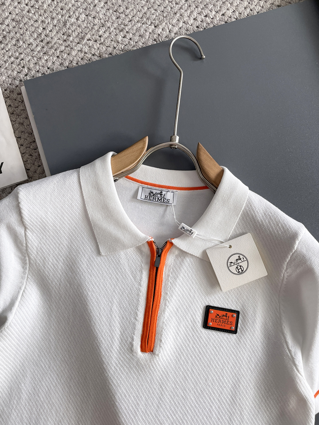 Hermes' new Spring/Summer 2025 collection features a minimalist and versatile lettered top-quality imported private knitwear polo short-sleeved shirt. It is a high-end heavy industry jacquard short-sleeved knitted sweater. The counter style is fashionable yet luxurious, and the quality is beyond doubt. The wearing effect is excellent. The same size as the official website's counter is M-xxxl