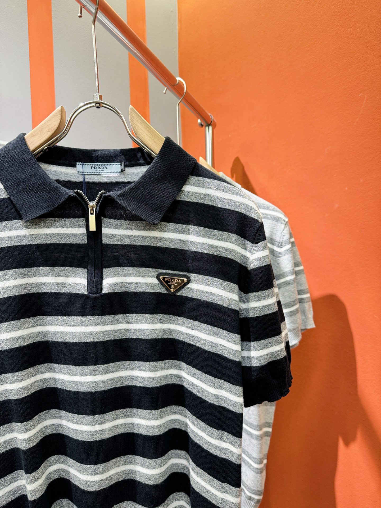 PRADA's Spring/Summer 2025 new knitted short-sleeved shirt, made of imported knitted fabric, has a soft touch. Top-quality imported private goods, fashionable design and trendy short-sleeved knitted sweater, without doubt luxurious quality. The wearing effect is excellent. The same style as the official website of luxury! Size: M-4XL