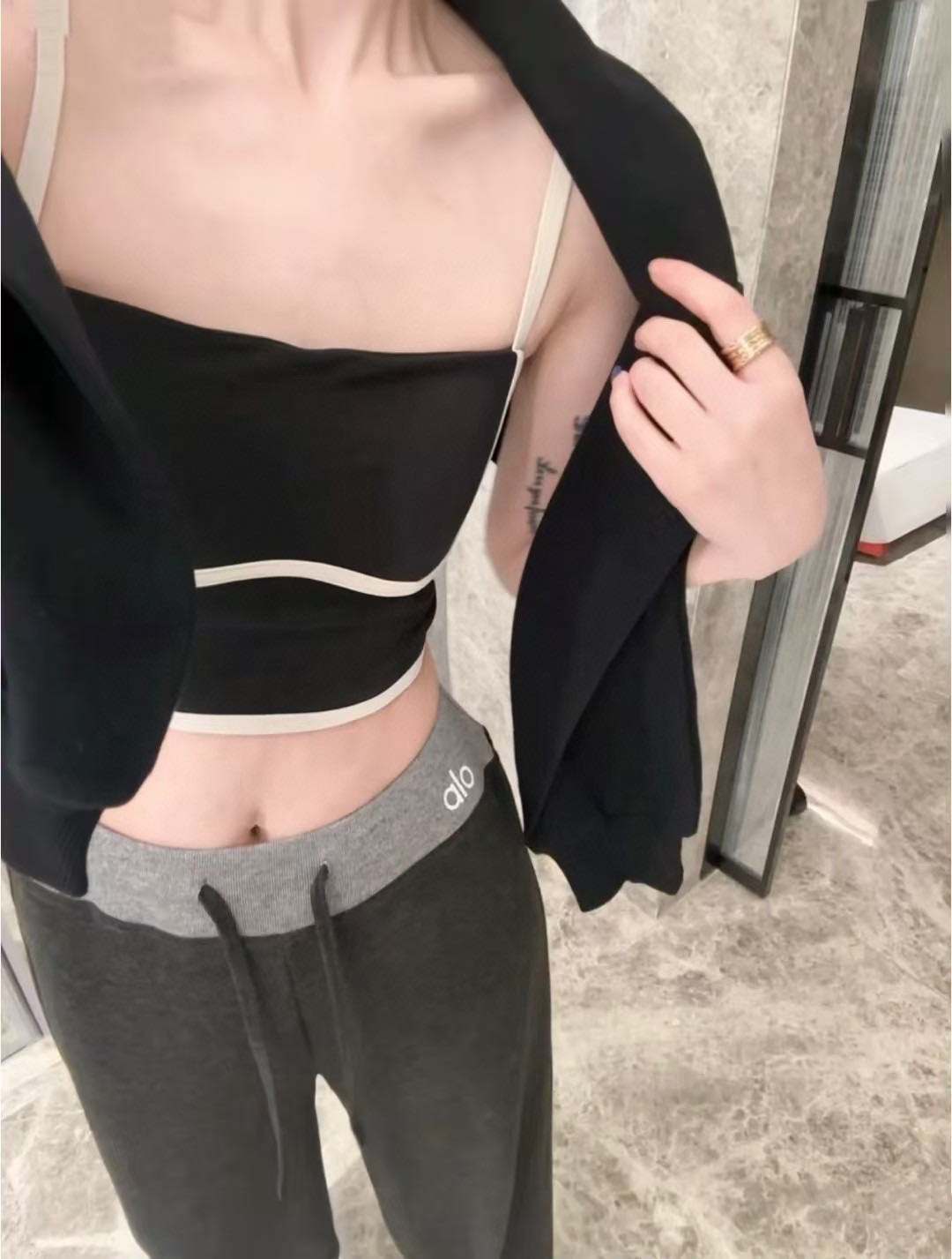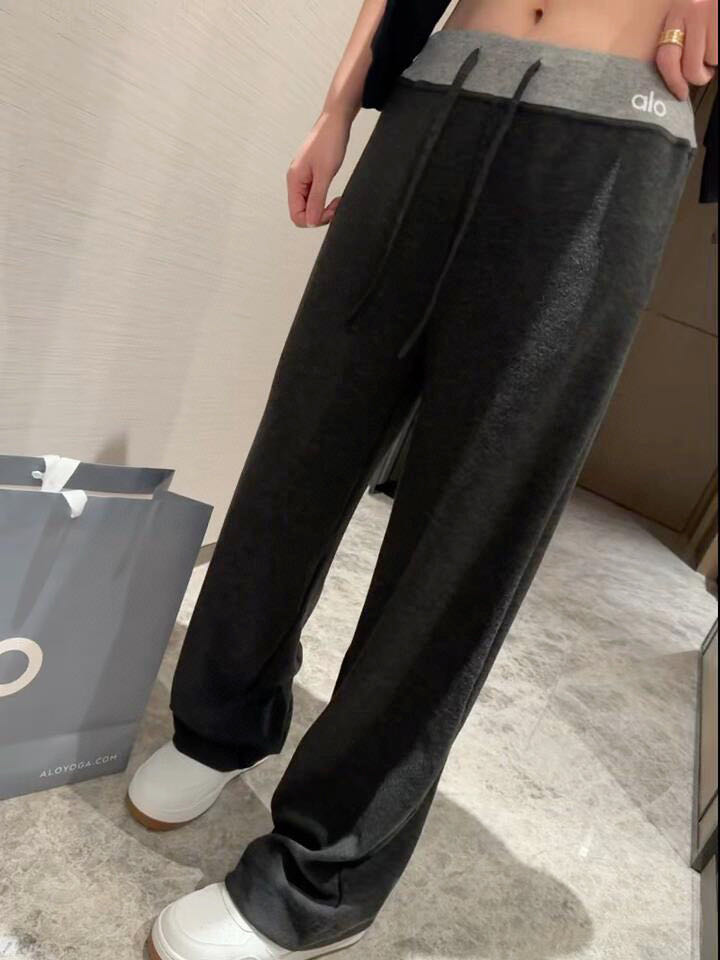 #ALO patchwork belt American wide-leg long pants wearing effect