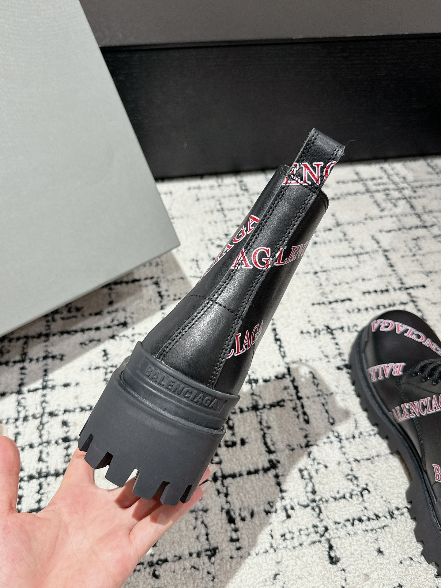 ???? # Couple style BALENCIAGA 24/ Bulldozer Boots graffiti ankle boots The design style of the Paris World House has always been distinctive. The dark, motorcycle, and exaggerated bulldozer series, which takes an unconventional path, not only creates a stylish look but also is suitable for daily wear ?? Fabric: black grated calfskin ?? Inside: black cowhide ?? OUTsole: Coarse-toothed rubber combination outsole increase foot height immediately 8cm ??Size: # Women 35-40 Men 39-44 (Women 40 custom-made non-returnable)