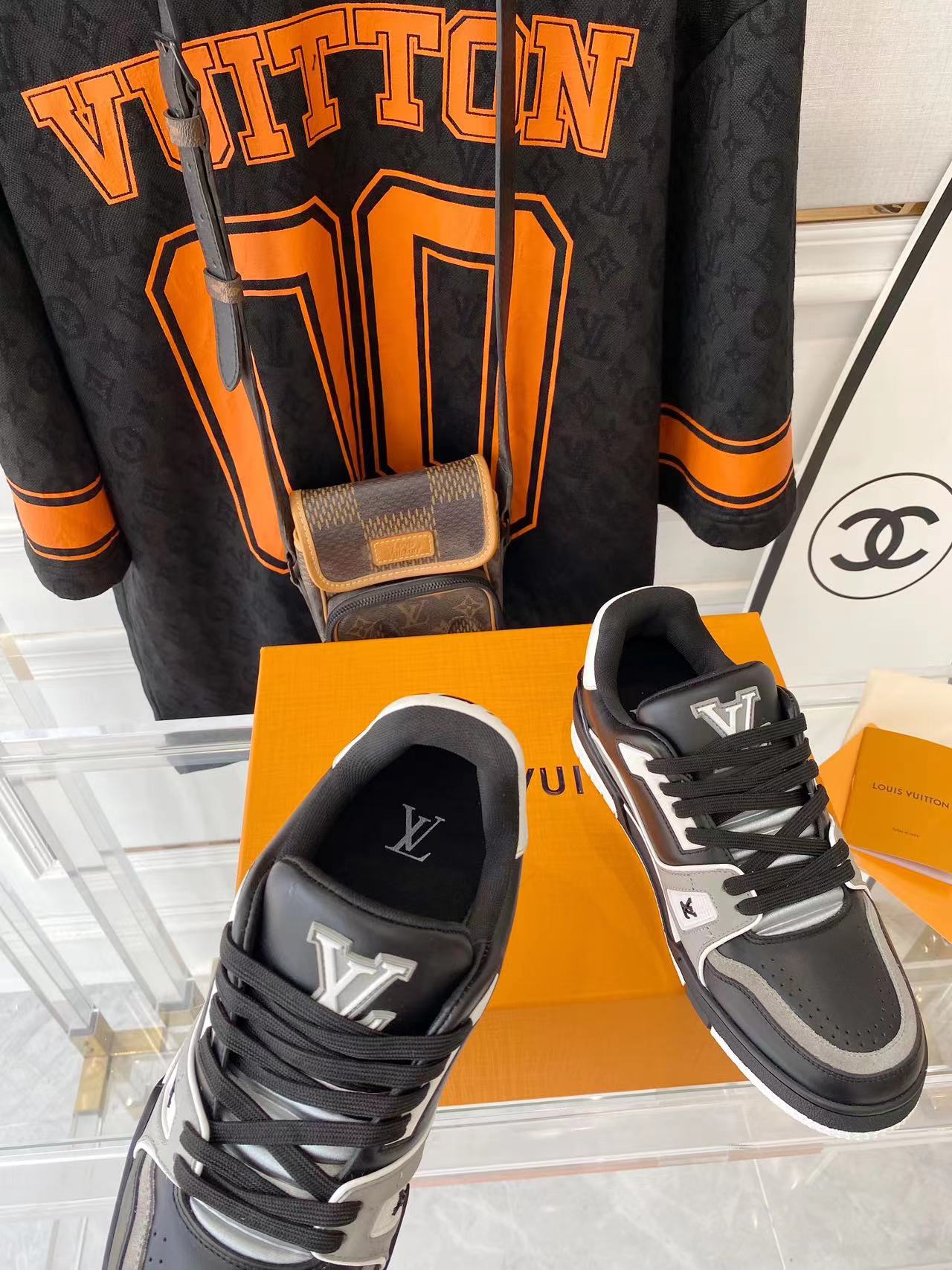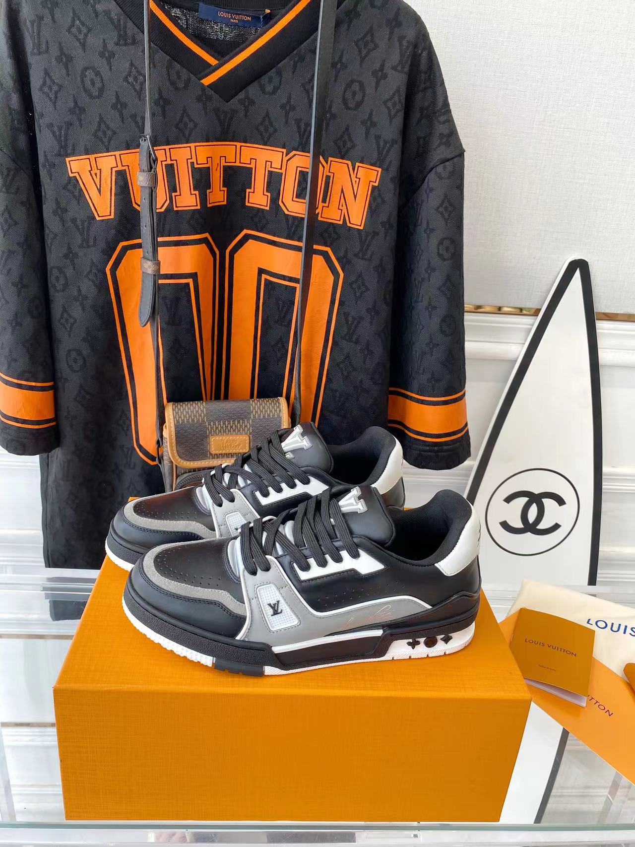 ???? ??L. The ??TRAINER sneaker, a favorite of Virgil Abloh, the artistic director of men's wear, is made of Monogram embossed calfskin and has a mesh lining. The innovative TPU 3-color outsole is decorated with Monogram flowers.