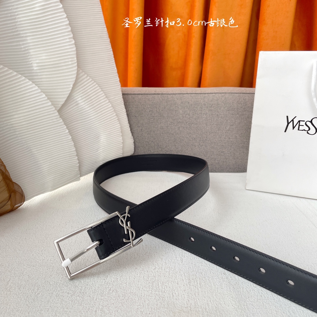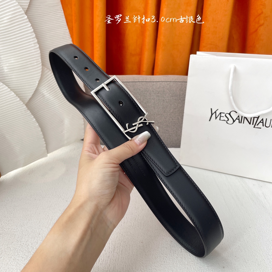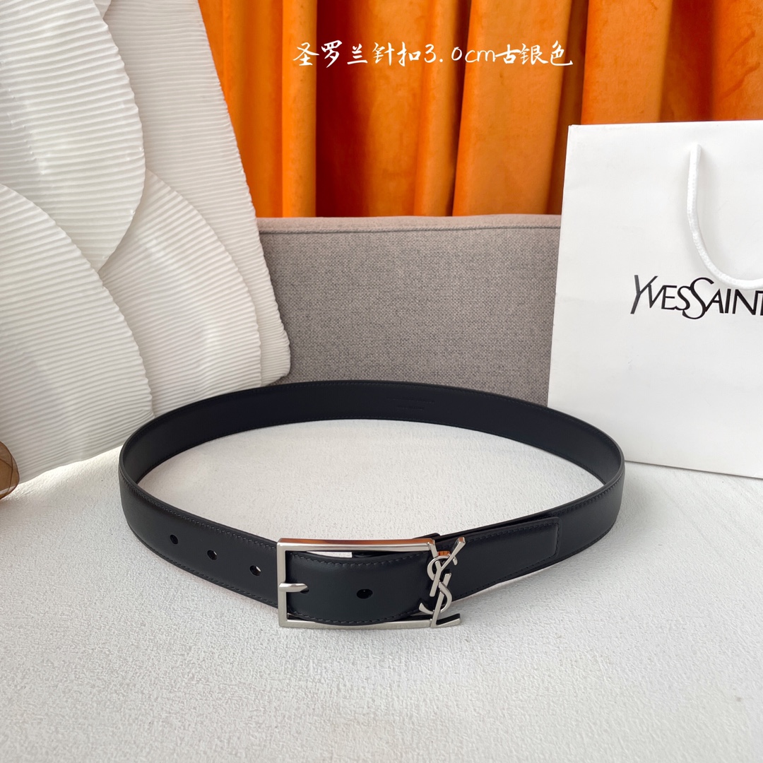 Yves Saint Laurent YSL classic plain weave top-quality calfskin soft belt 3.0cm square needle copper buckle brand logo belt ring is a must-have for fashionysts and never gets tired of looking at it